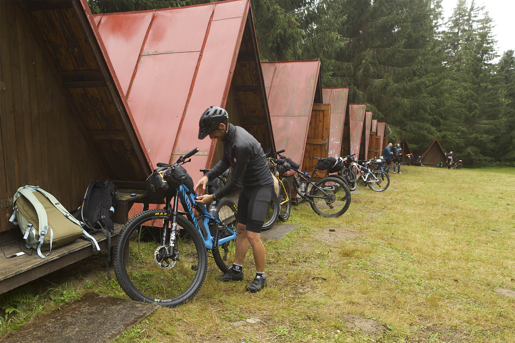 Štart sa konal po výdatných raňajkách a prezentácii. Vyštartovali sme za dažďa, no nikomu to neprekážalo, zem bola už aj tak premočená z predošlých dní a blata už viac byť nemohlo. Hromadný štart bolo pre mňa niečo obzvlášť fascinujúce. Som zvyknutý bikepackovať sám alebo maximálne vo dvojici, preto byť obklopený podobnými bláznami mi dávalo pocit spolupatričnosti. Aj keby sa vyberiem na tento pretek sám tak si zaručene nájdem niekoho ku komu by som sa vedel pridať na kus cesty. V tom spočíva čaro týchto pretekov, málokto sa tu ponáhľa na toľko aby nevedel prehodiť pár slov prípadne sa pridať a navzájom sa podporiť. Prekvapilo ma keď som od mnohých počul, že toto je ich vôbec prvý bikepacking. Niektorí v živote neodjazdili viac ako stopäťdesiat kilometrov na jeden ťah. Na jednej strane je to fascinujúce, že toto je ich prvá takáto jazda. V kútiku duše som ale dúfal, že ich to neodradí od toho aby niečo také opäť absolvovali.