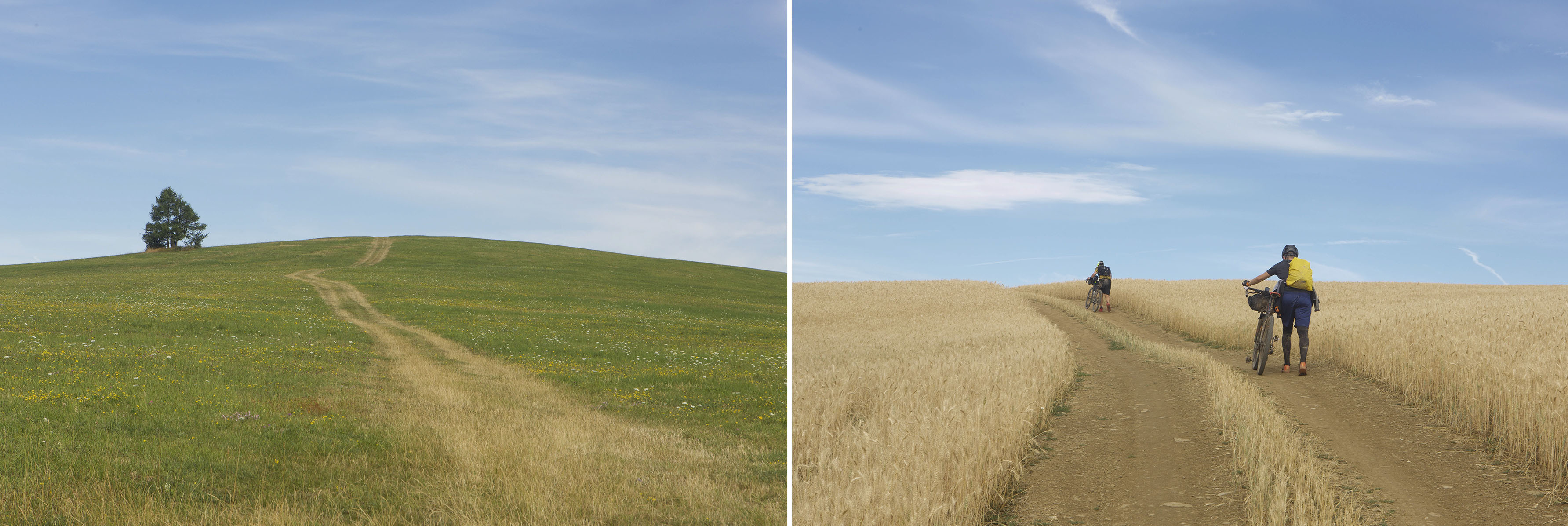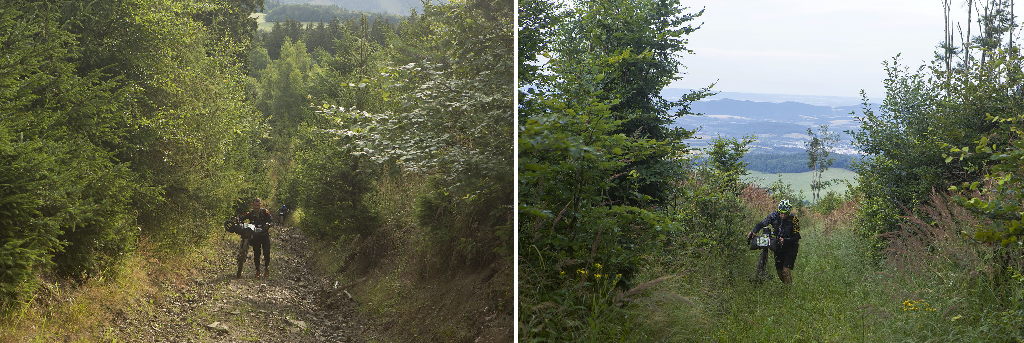 Druhý deň sme už nikoho z pretekárov nestretli. Stopy prvých troch pred nami sme stále čítali v teréne pod kolesami. Najlepšie rozoznateľná stopa bola po Rakúšanovi, úzka ryha s hladkým pásikom v strede. Polohu ostatných pretekárov sme sledovali cez online tracking a vďaka tomu sme vedeli či nás niekto nedobieha. V pätách nám bol Poliak na poľskom Romete z Bielsko-Biala a Slovák na monster graveli s 2.2" plášťami. Tí dvaja išli spolu a my sme sa snažili o to aby nás nedobehli.