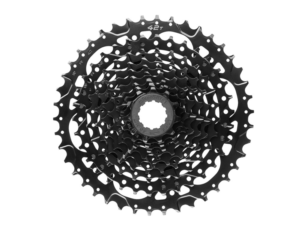 9-rýchlostná kazeta s rozsahom 11-42 alebo 11-46. Oceľové pastorky sú vyrábané tak aby zvládli aj ten najsilnejší krútiaci moment aký vieš vygenerovať.